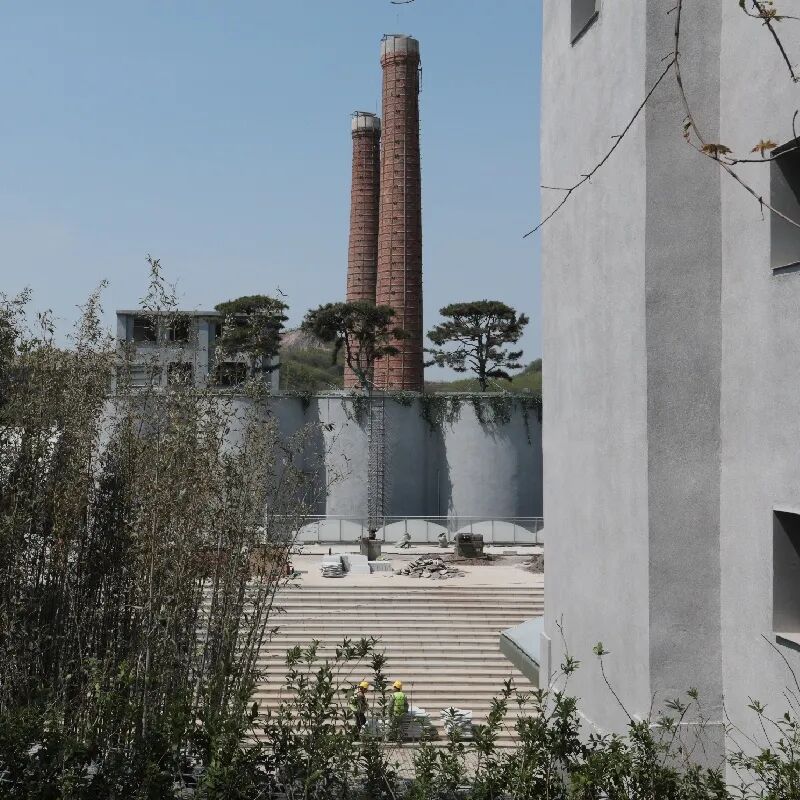 废弃的水泥厂房,经过精心的选择、加固,保留了基本完整的水泥生产工艺流程。富有特色的厂区肌理、工业建筑空间,以及作为大型公共艺术品的钢制生产设备,共同组成了奇幻的群体图景。